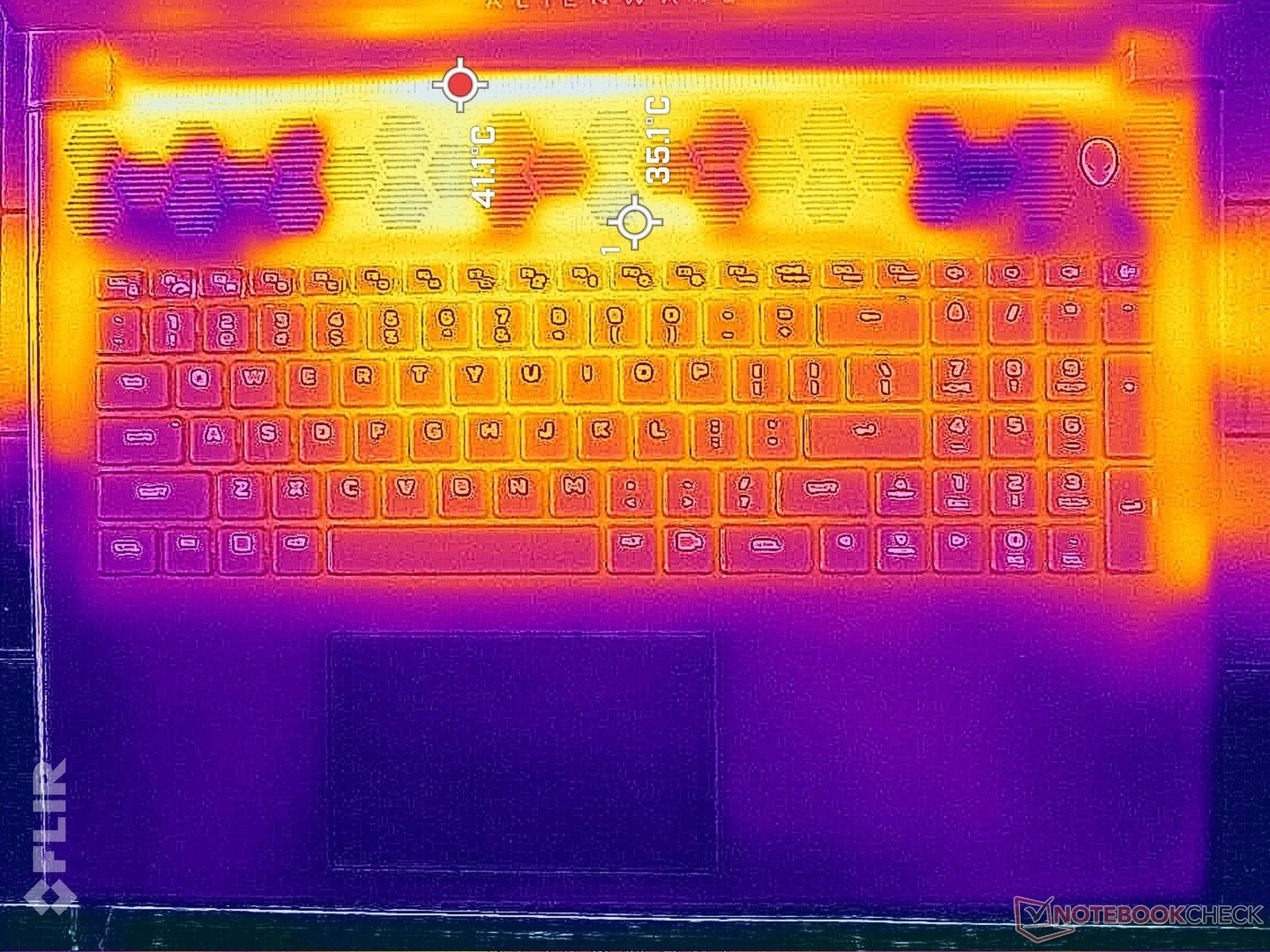 (+) Die Handballen und der Touchpad-Bereich sind mit gemessenen 23.8 °C kühler als die typische Hauttemperatur und fühlen sich dadurch kühl an.