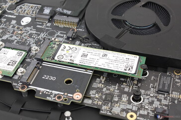 Recht schlecht erreichbar ist so auch der SD-Kartenleser an der Rückseite des Alienware m18 R1. Dieser ist aber mehr als doppelt so schnell wie der des MSI Titan GT77.