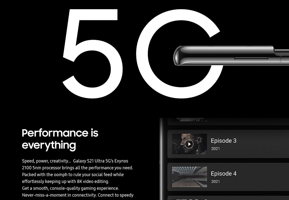 Kommen wir nun noch zum Marketing-Material, das ebenfalls von Roland Quandt ins Netz gestellt wurde. Auch hier sehen wir, dass Samsung erstmals mit Speicher-Optionen wirbt, was bei fehlendem Micro-SD-Slot durchaus Sinn macht. Etwas seltsam ist der Hinweis auf die Dual-Zoom-Kamera mit dem Bild des regulären Galaxy S21 beziehungsweise Galaxy S21+, welches ja gar keine echte optische Zoom-Kamera bieten wird, das 64 Megapixel Tele ist schlicht ein Weitwinkel mit viel Cropping-Potential, was wir ja schon von der Galaxy S20-Serie kennen. Letztlich wird das morgige Unpacked-Event also durchaus noch spannend, denn auch wenn Verkaufspreise und das Material der Rückseite nun geklärt sein dürfte, sind manche Details aufgrund der regionalen Unterschiede immer noch etwas unsicher. Fix ist jedenfalls, dass bei uns in Europa der Exynos 2100 zum Einsatz kommen wird, der gestern bereits offiziell gelauncht wurde und durchaus vielversprechend wirkt.
