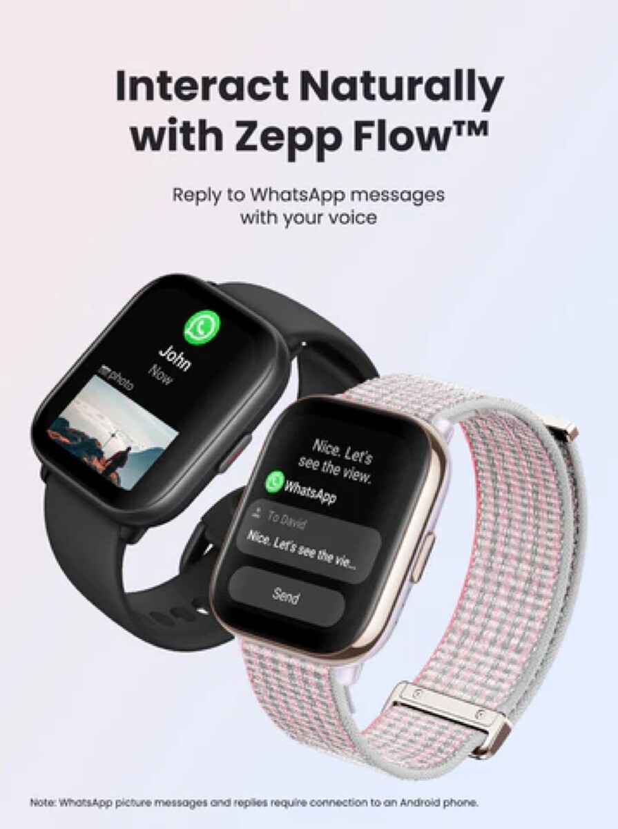 Die Integration ins Betriebssystem erlaubt es dem KI-Assistenten, die meisten Funktionen der Smartwatch per Sprachsteuerung zu bedienen, sodass sich etwa ein Workout starten, gesammelte Daten abfragen oder auf Nachrichten antworten lässt. Die Coaching-Funktion von Zepp Flow bzw. Zepp Coach kann individuelle Trainingspläne zusammenstellen und es einfacher machen, Fortschritte zu erzielen.