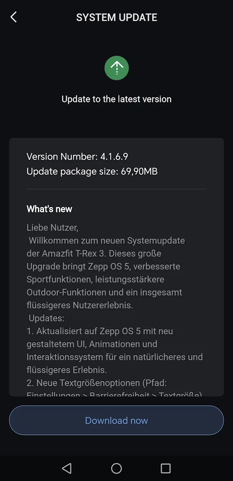 Das Changelog ist entsprechend lang, das Update behebt nicht nur Fehler, sondern bringt das installierte Zepp OS auf die Version 5. Damit profitieren Kunden von einer neuen Benutzeroberfläche, dabei gibt es auch neue Animationen und Zepp Health verspricht eine flüssigere Nutzererfahrung. Zudem gibt es neue Optionen zur Steuerung der Textgröße, was beispielsweise für Personen mit eingeschränktem Sehvermögen eine signifikante Verbesserung darstellen könnte.
