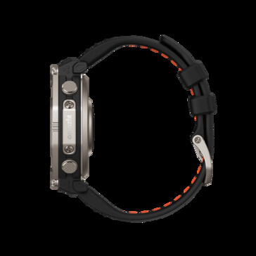 Das Gehäuse besteht beim neuen Modell aus Titan statt wie beim Vorgänger aus Edelstahl. Das soll vor allem Gewicht sparen, sodass die Smartwatch samt Armband weiterhin 89 Gramm wiegt, obwohl ein 74 Prozent größerer Akku verbaut wird. Die 870 mAh Batterie soll eine Laufzeit von bis zu 30 Tagen erreichen. Werden ein Sportmodus, das Always-on-Display und das GPS-Modul durchgehend genutzt, soll immerhin eine Laufzeit von 28 Stunden möglich sein. Das runde 1,5 Zoll AMOLED-Display erreicht nun eine Helligkeit von 3.000 Nits, statt der 1.000 Nits des Vorgängermodells.