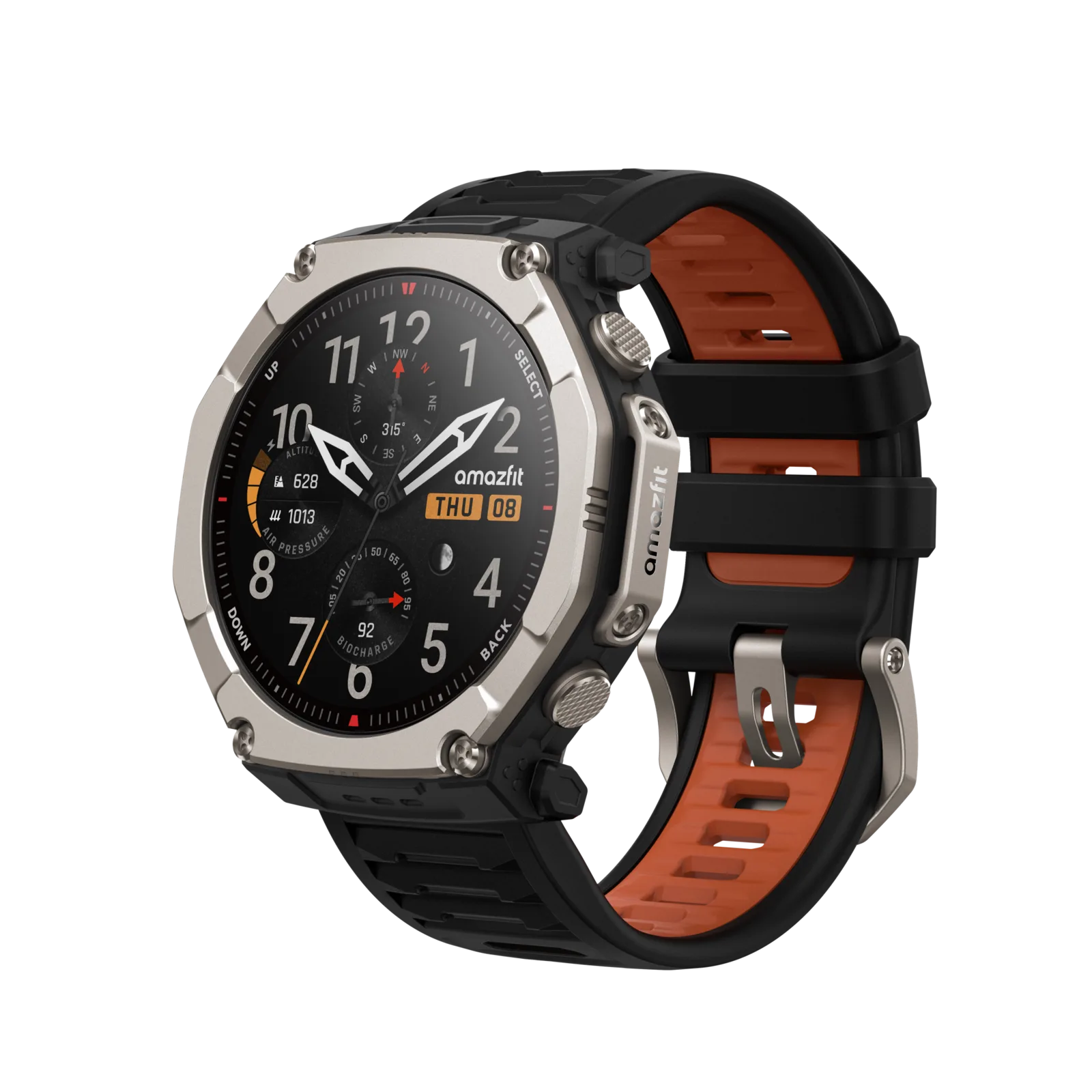 Saphirglas schützt den Bildschirm vor Kratzern. Amazfit verbaut eine Taschenlampe, die eine Helligkeit von bis zu 300 Lux erreicht, und die auch grünes Licht für die Nutzung mit einem Nachtsichtgerät und einen SOS-Modus unterstützt. Die Smartwatch unterstützt über 140 Sportmodi sowie mehr als 400 Apps. Neben einem Herzfrequenz- und SpO2-Sensor bietet die Uhr auch einen Umgebungslichtsensor, einen Temperatur-Sensor und eine barometrischen Höhenmesser.