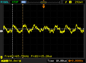 Das Display flackert mit 65790 Hz (im schlimmsten Fall, eventuell durch Pulsweitenmodulation PWM) bei einer eingestellten Helligkeit von 6 % und darunter. Darüber sollte es zu keinem Flackern kommen. Die Frequenz von 65790 Hz ist sehr hoch und sollte daher auch bei empfindlichen Personen zu keinen Problemen führen. Im Vergleich: 53 % aller getesteten Geräte nutzten kein PWM um die Helligkeit zu reduzieren. Wenn PWM eingesetzt wurde, dann bei einer Frequenz von durchschnittlich 8020 (Minimum 5, Maximum 343500) Hz. | |||
