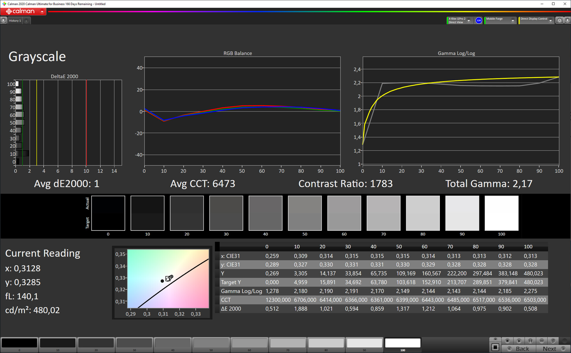 ΔE Greyscale Calman: 1 | ∀{0.09-98 Ø5}