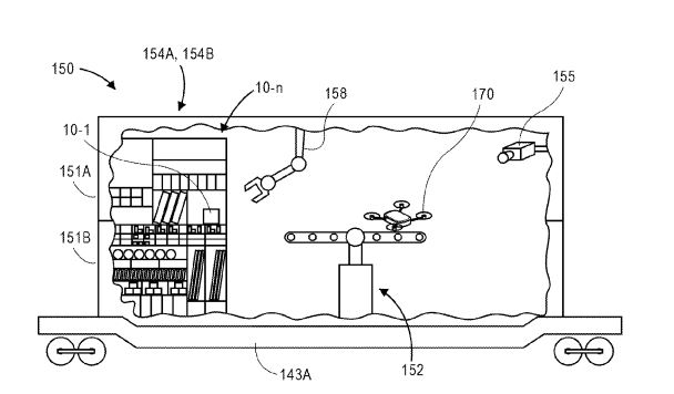Ein neues, von Business Insider gefundenes Patent zeigt nun, wie in Zukunft die Auslieferung auch von mobilen Drohnen-Hubs gelingen könnte. So beschreibt Amazon Container, die via Zug, Containerschiff oder Sattelzugmaschine transportiert werden können. In diesen ist ein System untergebracht, um Lieferdrohnen mit auszuliefernden Artikeln beladen zu können.