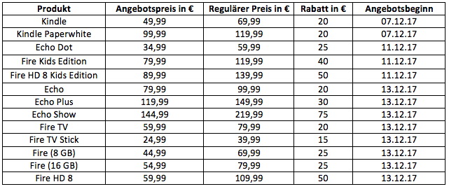 Amazon.com legt auch in Deutschland für das Weihnachtsfest nochmals eine lohnende Rabattaktion für die eigenen Amazon-Geräte der Reihen Echo, Kindle und Fire auf. Wer also noch auf der Suche nach smarten Weihnachtsgeschenken ist, oder einfach sich selbst beschenken will, den erwarten im Rahmen der Last-Minute-Deals-Angebote in jeder Gerätekategorie spannende Rabatte.