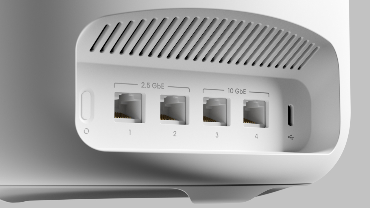 Bei den Anschlüssen bietet der brandneue eero Max 7 Wi-Fi-7-Triband-Router von Amazon nicht nur zwei 2,5-Gigabit-Ethernet-Ports, sondern zudem zwei superschnelle 10-Gigabit-Ethernet-Ports. Amazon nennt für den Mesh-WLAN-Router Abmessungen von rund 222 x 184 x 90 Millimetern und eine Mesh-WLAN-Abdeckung von bis zu 232 Quadratmeter für mehr als 200 konnektierte Geräte. Trotz der hohen Performance schafft es der Hersteller offenbar, den Highspeed-Max passiv zu kühlen.