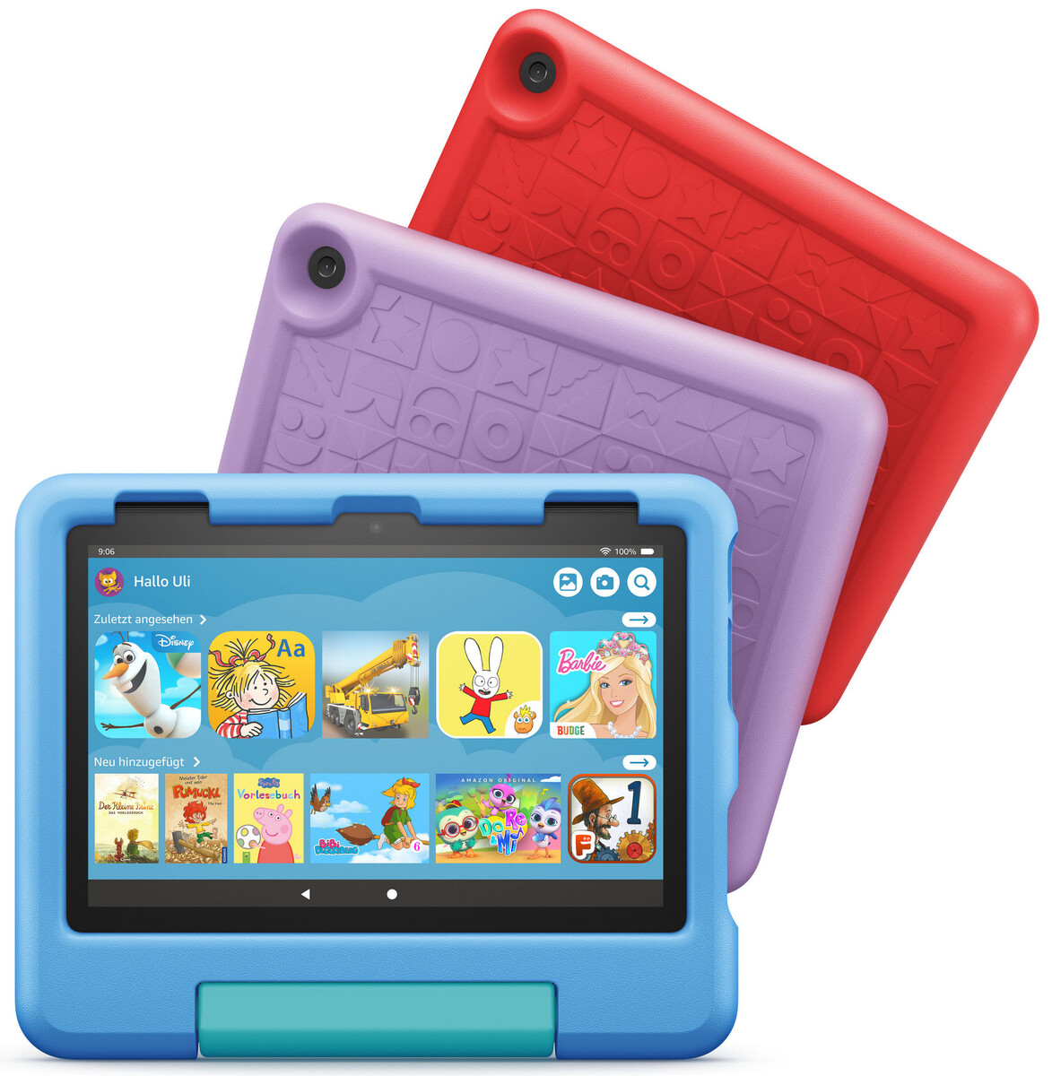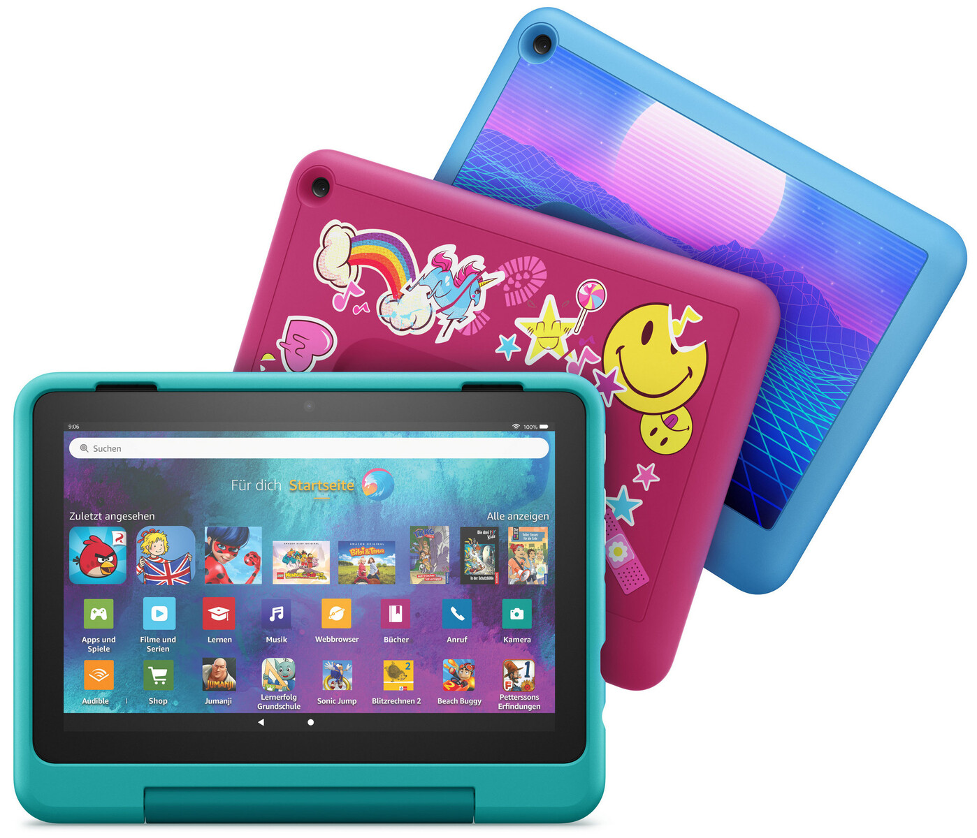 Das Fire HD 8 Kids ist für Kinder im Alter von 3 bis 7 Jahren gedacht und enthält ein Jahr Amazon Kids+ mit Zugriff auf Unterhaltungs- und Lerninhalte von Marken wie Disney, Barbie and Pumuckl. Geliefert wird das Kids-Tablet mit einer kindgerechten Hülle und 2-Jahre-Sorglos-Garantie. Das neue Fire HD 8 Kids Pro wurde für Kinder im Schulalter entwickelt und wird ebenfalls zusammen mit kinderfreundlicher Hülle, 2-Jahre-Sorglos-Garantie und einem Jahr Amazon Kids+ ausgeliefert.