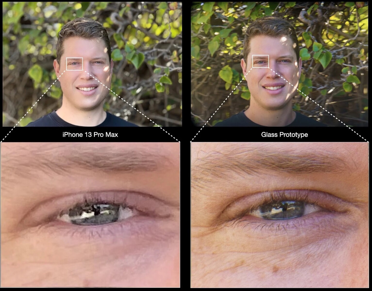 Dies soll durch einen KI-Algorithmus automatisch geschehen. Um zu zeigen, wozu diese Technologie imstande ist, hat Glass Imaging das unten eingebettete Beispiel-Foto geteilt, bei dem die Bildqualität dieses anamorphen Kamerasystems mit der Hauptkamera eines Apple iPhone 13 Pro Max verglichen wird.