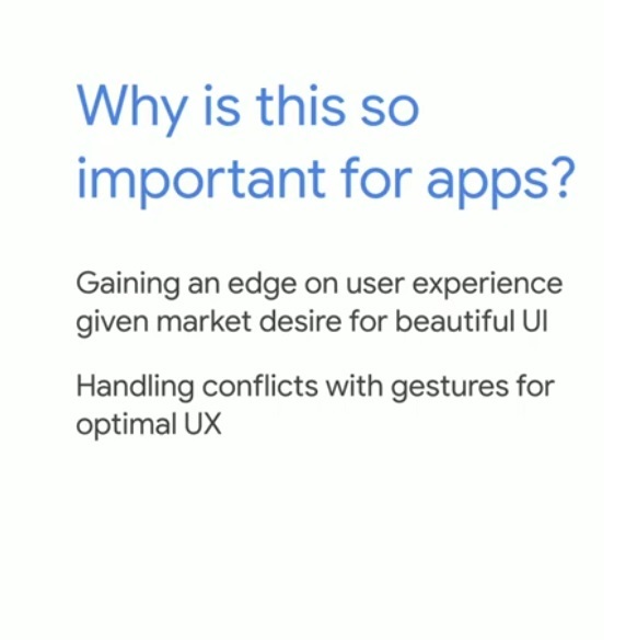 Ronan Shah, Produktmanager beim Android GUI-Team bestätigte, dass mit Android Q nur zwei Navigations-Methoden erlaubt wären, einerseits die traditionelle Drei-Button-Navigation oder die neue Google Gestensteuerung, die nun einfach Android Navigationsgesten heißen sollen. Damit wolle man dem Wildwuchs der Gesten unter Android-OEMS Einhalt gebieten und für App-Entwickler eine universelle Implementierung im gesamten Android-Universum garantieren, ohne dass auf einzelne Oberflächen Rücksicht genommen werden muss.