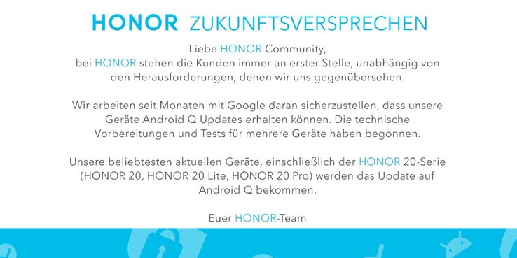 Ein Zukunftsversprechen gibt Honor aka Huawei aktuell für einige ihrer Smartphones ab, insbesondere die neue Honor 20-Familie, die seit Kurzem vorbestellt werden kann, etwa hier bei Amazon, und in den ersten Tagen des Juli auch hierzulande ausgeliefert wird. Sowohl auf einer eigens eingerichteten Webseite als auch über die sozialen Medien bemüht sich die Huawei-Tochter um Schadensbegrenzung nach dem US-Bann, der allerdings in einigen Bereichen durchaus Löcher zeigt, etwa bei den Chiplieferungen durch US-Hersteller wie Intel und Micron.