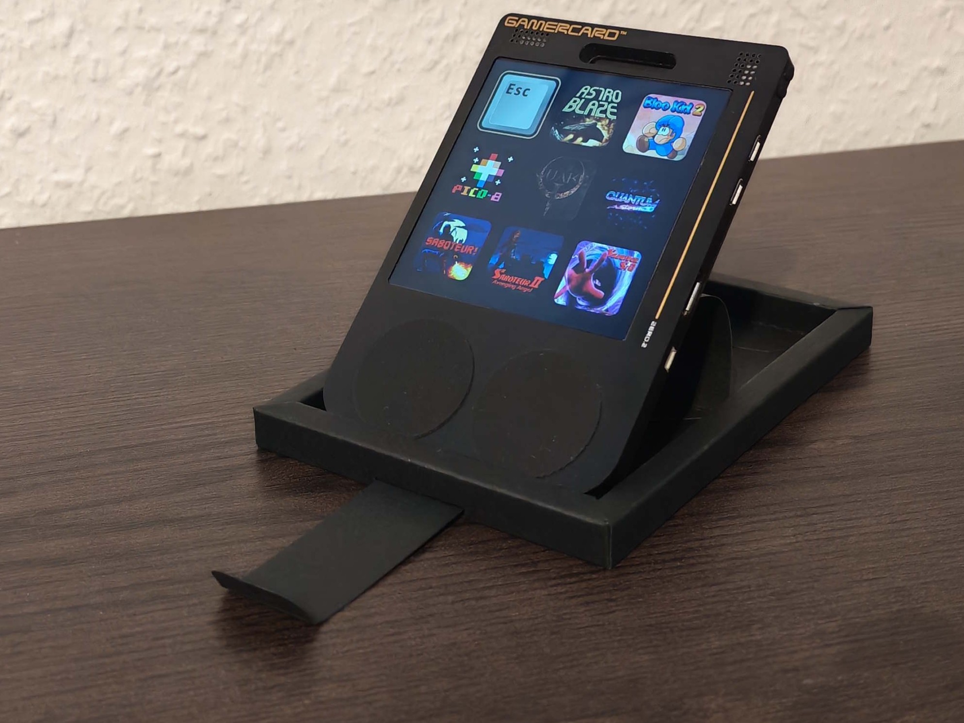 Dabei ist die GamerCard vom reinen Nutzerwert als Gaming-Handheld auch wesentlich günstigeren und etwa über AliExpress (R36XX bei AliExpress) erhältlichen Alternativen sowohl auf Ebene der Software als auch der Hardware deutlich unterlegen. So handelt es sich nicht um ein System mit dutzenden, vorinstallierten Emulatoren und tausenden ROMs. Besonders das Fehlen von solchen ROMs wollen wir an dieser Stelle aber gerade nicht kritisieren, da verschiedene Gaming-Handhelds schlicht gegen das Urheberrecht verstoßen. Die vorinstallierten Titel wie Bloo Kid 2, die Saboteur-Trilogy und AstroBlaze DX sind aus dem heutigen Blickwinkel natürlich als sehr klassisch zu werten. Die PICO-8-Kompatibilität ist gegeben - der Zugang muss aber extra gekauft werden.