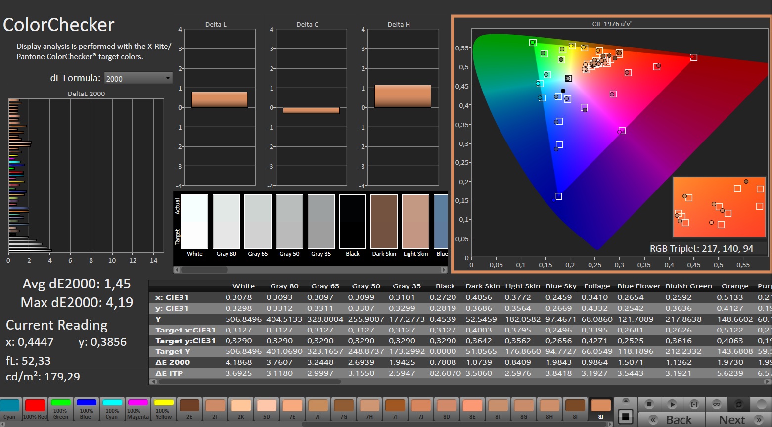 ΔE ColorChecker Calman: 1.45 | ∀{0.5-29.43 Ø4.76}