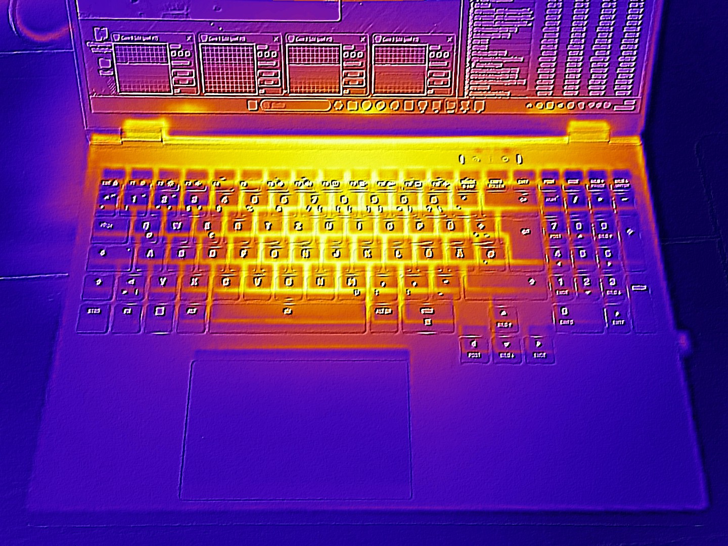 (+) Die Handballen und der Touchpad-Bereich sind mit gemessenen 31 °C kühler als die typische Hauttemperatur und fühlen sich dadurch kühl an.