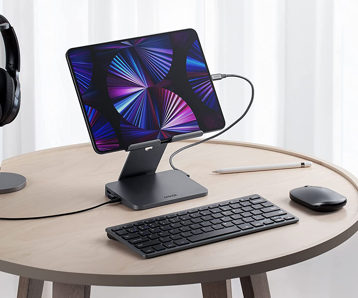 Die unverbindliche Preisempfehlung für den Anker 551 Tabletständer mit integriertem 8-in1 USB-C-Hub liegt bei rund 110 Euro. Erhältlich ist das Produkt zu diesem Preis unter anderem bei Amazon. Ein Netzteil für die Stromversorgung des Tablets liegt nicht bei. Der Hersteller empfiehlt die Verwendung eines 45 bis 100 Watt starkes USB-C-Ladegerät mit dem USB-C-Power-Delivery-Eingangsanschluss zu verbinden, um das iPad oder Tablet mit leistungsstarken Pass-Through-Ladungen zu versorgen. Hier bietet sich z. B. das Anker Nano II 65W USB-C Ladegerät für rund 50 Euro an.