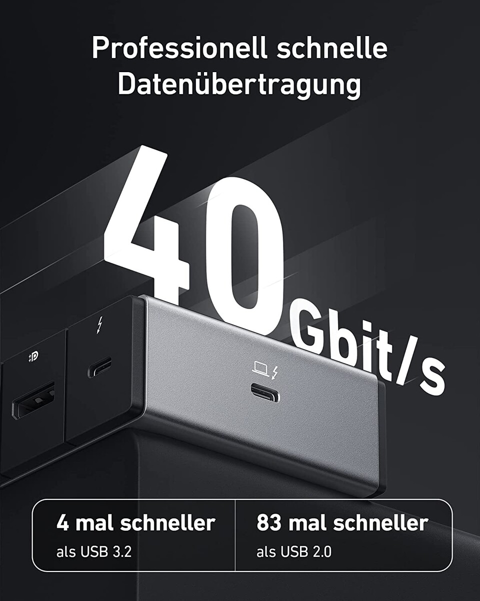 Neben der Anker 675 USB-C Docking Station (ca. 250 Euro bei Amazon) mit integriertem Monitorständer sowie der Anker 568 USB-C Dockingstation (ca. 300 Euro bei Amazon) mit USB4 hat Anker in den vergangenen Tagen auch noch einen neuen Thunderbolt-Hub auf den Markt gebracht. Die neue Anker 778 Thunderbolt Dockingstation kann bei Amazon bestellt werden. Die unverbindliche Preisempfehlung beträgt knapp 380 Euro.