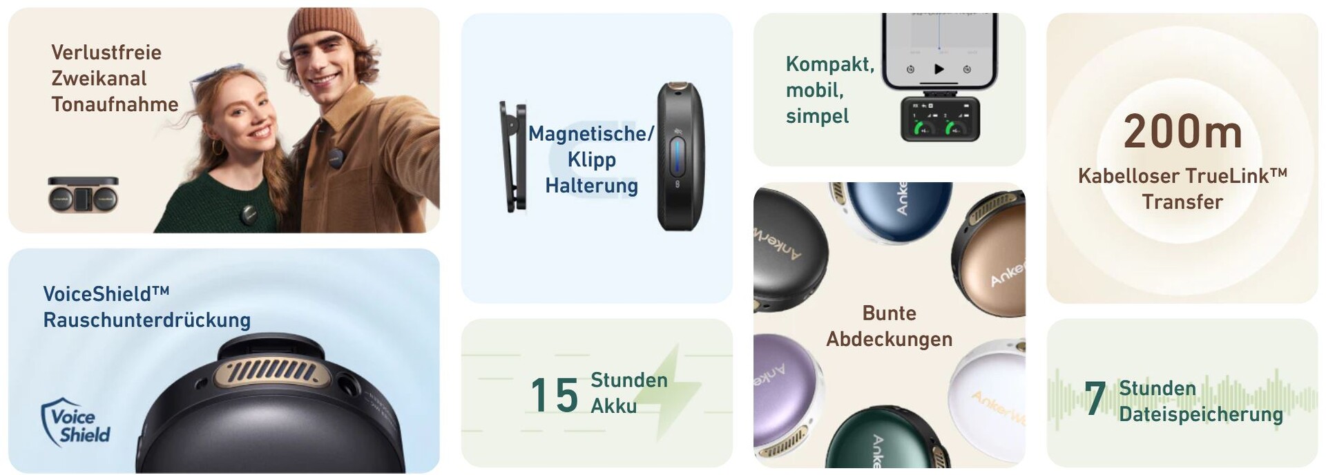 Anker: Kabelloses Mikrofon-Set AnkerWork M650 mit VoiceShield, Speicher und Display startet mit Frühbucherrabatt