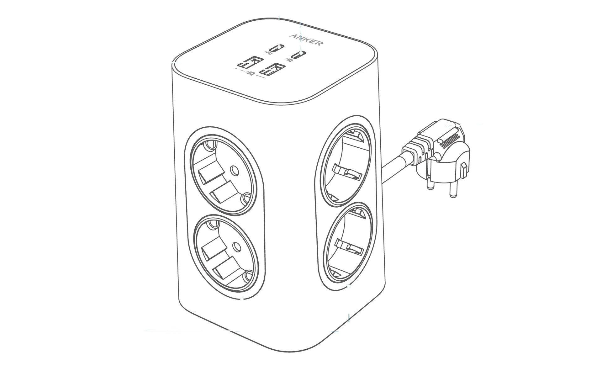 Der neue Anker 12-in-1 20W Power Strip ist eine Steckdosenleiste, bei der die Steckdosen im platzsparenden Design senkrecht übereinander angeordnet sind. Laut der Quelle sind insgesamt acht AC-Ausgänge mit jeweils 230 V verbaut, also jeweils zwei pro Seite. Somit lassen sich bis zu acht Geräte zeitgleich mit 230 V versorgen, wobei die maximale Leistung bei 4.000 W liegt. Der Überspannungsschutz ist mit 300 J angegeben. Die Stromversorgung erfolgt über ein auf der Rückseite integriertes Kabel mit 2 m Länge samt Stecker.