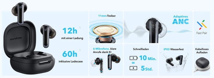 Im Inneren der Soundcore P40i verbaut Anker 11 mm große Treiber, die damit sogar etwas größer ausfallen als in den heute ebenfalls neu vorgestellten Teufel Airy TWS 2 - wobei dies letztendlich noch nicht viel über die wirkliche Soundqualität aussagt. Anker verspricht dank BassUp-Technologie einen satten Bass.
