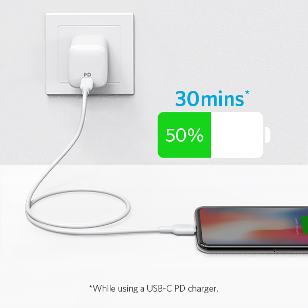 Laut Hersteller kann das PowerLine II USB-C-to-Lightning-Kabel ein iPhone (ab der 8er-Serie) in 30 Minuten um bis zu 50 Prozent aufladen. Dies setzt jedoch voraus, dass eine kompatible USB-C Power Delivery-Ladestation gemeinsam mit dem neuen Kabel verwendet wird.