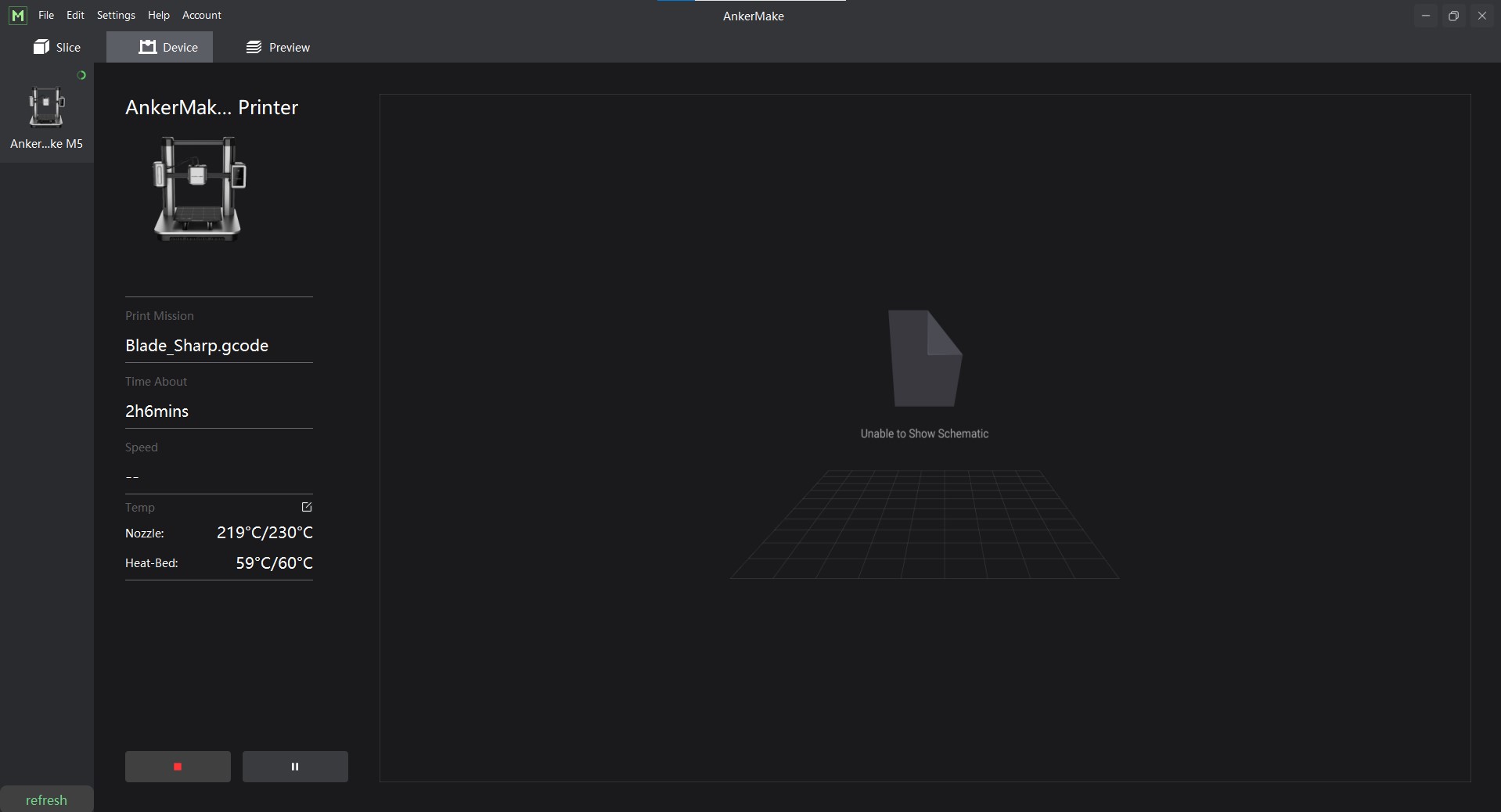 Ist der AnkerMake M5 bereits mit dem WLAN verbunden, lassen sich die Druckdateien drahtlos an den internen Speicher des Druckers übertragen. Über das Programm besteht auch die Möglichkeit, einen Druck zu starten und einige andere Funktionen des Druckers aufzurufen.