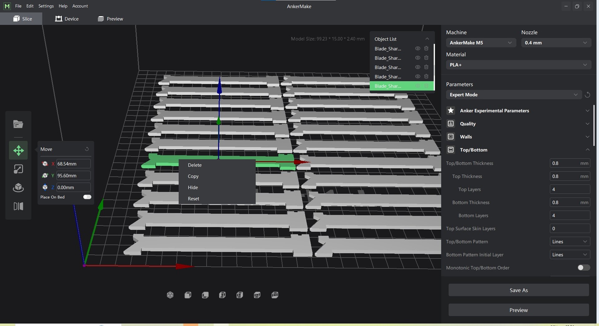 An dem Programm, welches sich noch im Betastadium befindet, können wir einige Schönheitsfehler finden, aber die grundlegenden Funktionen sind tadellos. So ist die Kamerasteuerung mitunter etwas irritierend und auch Drag-and-drop von Dateien funktioniert noch nicht. Kopieren und Platzieren von 3D-Objekten funktioniert im AnkerMake Slicer nur manuell. Das Erstellen von 3D-Druck-Dateien ist dafür sehr unkompliziert. Nachdem man eine stl- oder obj-Datei geöffnet hat, müssen an sich nur fünf Einstellungen getroffen werden. 3D-Druck-Experten können aber auch auf die volle Palette an Optionen gelangen, die Ultimaker-Cura bietet. Für Anfänger empfiehlt es sich, sich zunächst mit der Auswahl des Materials, der Schichthöhe und der Füllstärke zu begnügen. Wir haben die ersten Drucke auf dem AnkerMake M5 mit umgeänderten Einstellungen gestartet und festgestellt, dass hier für die meisten Aufträge wohl kein Änderungsbedarf besteht.