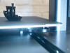 Die Säulen des Torbogens sind durch ihre mehreckige Formgebung stabil. In ihnen laufen die Kabel zum Druckkopf und zur Steuereinheit mit dem verbauten Touchscreen. Auf der rechten Seite des Druckers dient die RGB-Lichtleiste als Statusanzeige. Verschiedene Lichtfarben können hier anzeigen, ob der Drucker im Moment aufheizt, druckt, oder ob ein Fehler vorliegt.