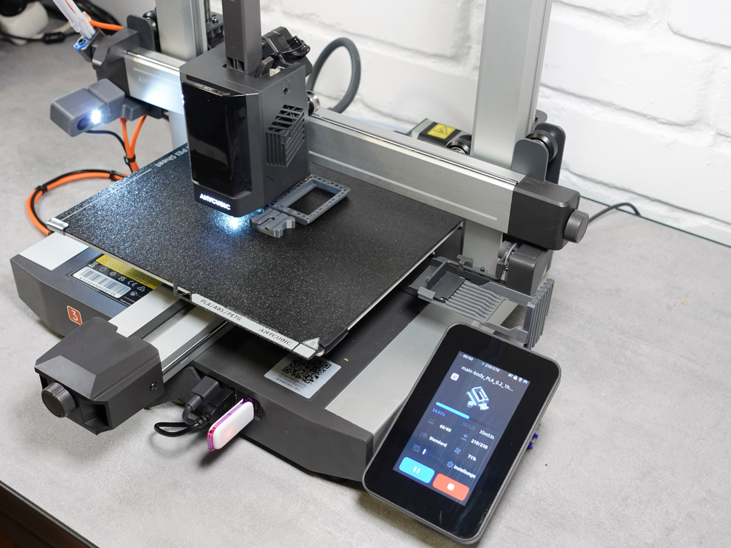 Zu den klaren Stärken gehört die kinderleichte und schnelle Inbetriebnahme. Dank Vormontage und einem Start-Up-Prozess, der vollautomatisch nivelliert und die Vibrationskompensation einrichtet, ist der Drucker in kurzer Zeit startklar. Bei moderaten Geschwindigkeiten liefert er – auch dank der gut abgestimmten Profile im Anycubic Slicer Next – eine sehr ansprechende Druckqualität. Die ACE Pro Einheit glänzt ebenfalls, jedoch weniger als Farbwechsler, sondern vielmehr als durchdachte Filament-Station zum Trocknen, Lagern und automatischen Nachfüllen.