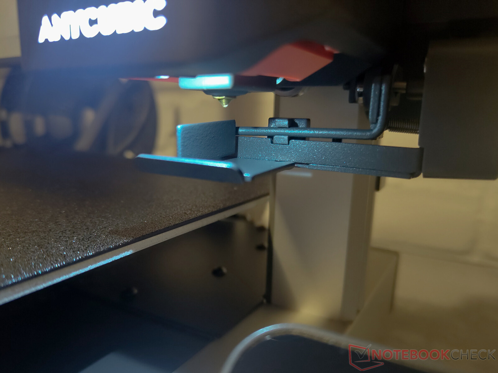 An der Hardware selbst gibt es kaum bemerkenswerte Besonderheiten. Anycubic setzt auf eine bewährte und zweckmäßige Standardkonstruktion. Das Kabelmanagement fällt dabei sehr minimalistisch aus, was für diese Bauweise und Preisklasse allerdings nicht untypisch ist. Die zum Druckkopf und zur X-Achse führenden Kabelstränge, inklusive der neuen Zuleitung für die Kamera liegen erstmal einzeln vor. Sie sollten so arrangiert werden, dass sie während des Drucks nirgendwo hängen bleiben oder an der Konstruktion scheuern.