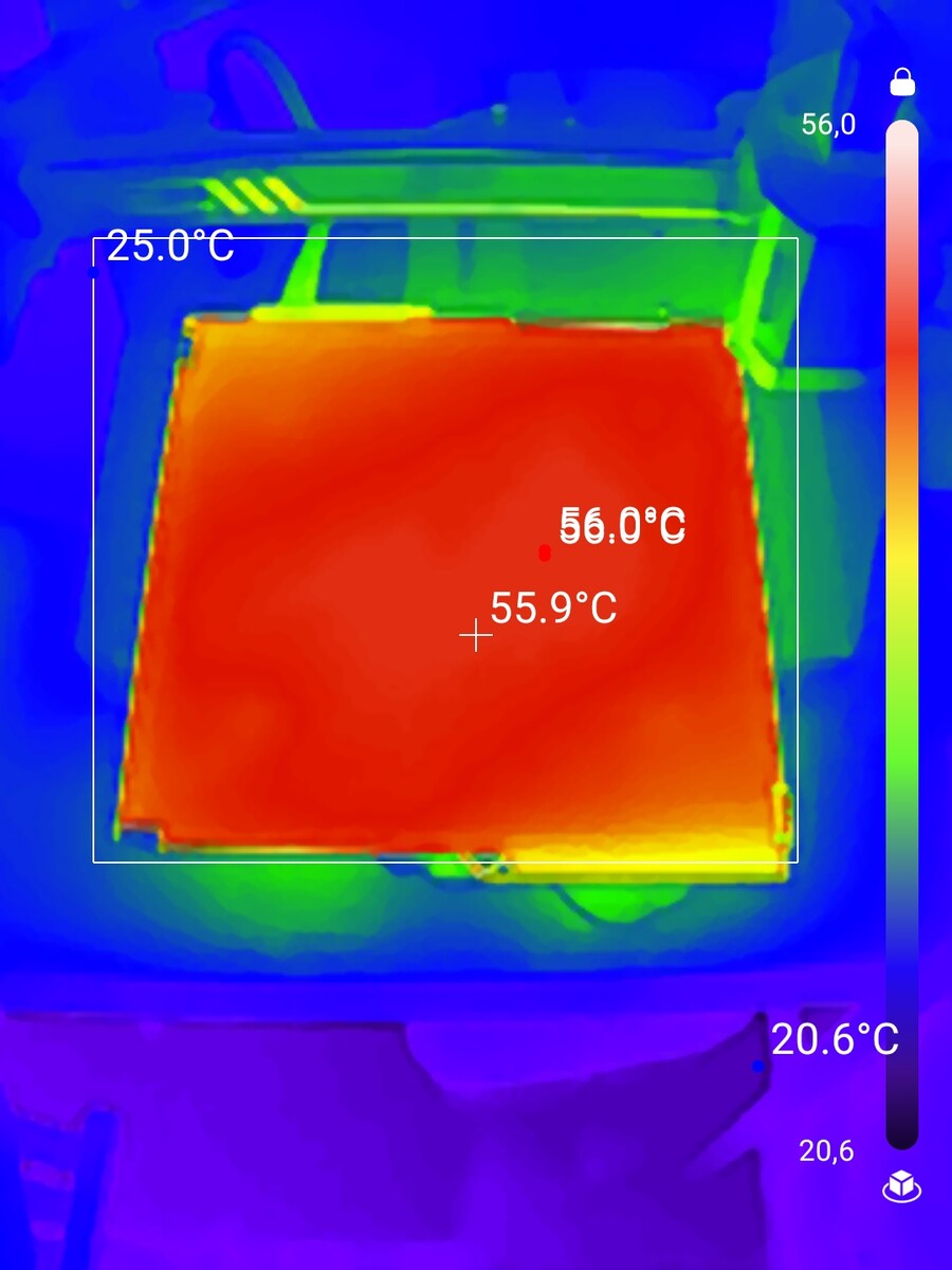 Abhilfe schafften im Test selbst gefertigte Klammern, mit denen die Druckplatte an den Ecken auf der Magnetbasis fixiert wurde. Die bringen jedoch auch die Gefahr mit, dass man die dünne Lackschicht über den Heizelementen beschädigt und so für Kurzschlüsse sorgt.