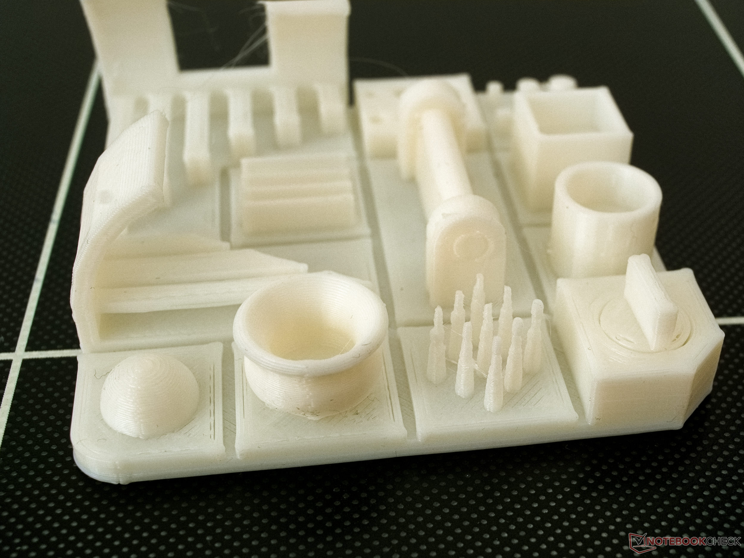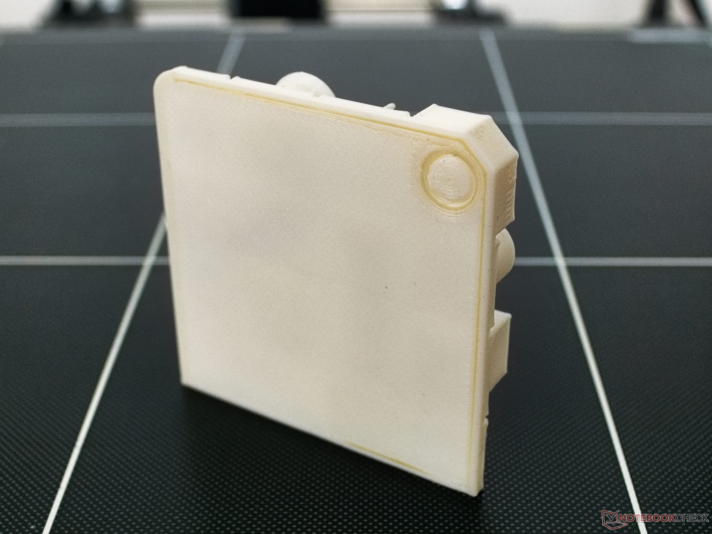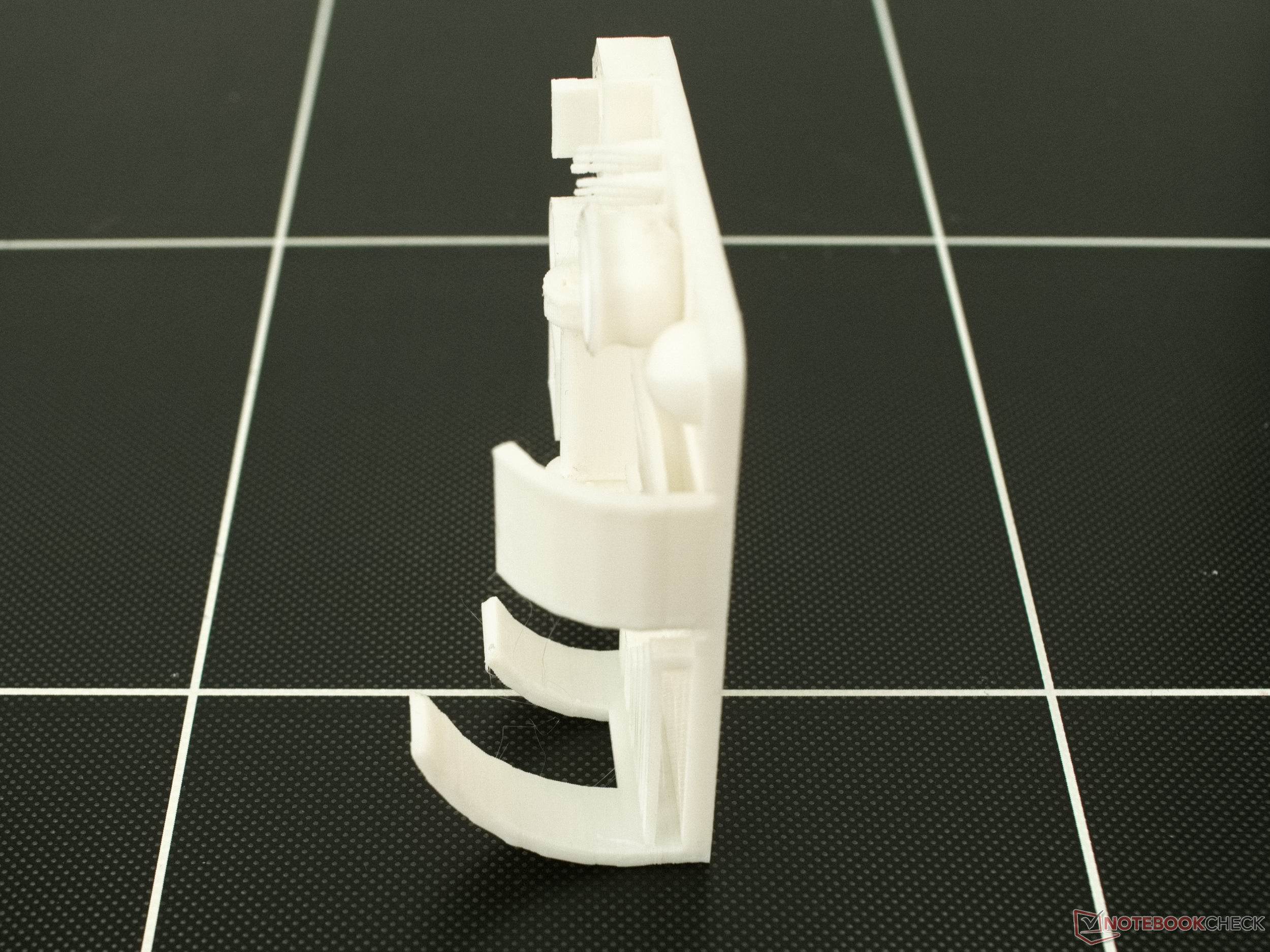 Bei der Dimensionsgenauigkeit liegt die größte gemessene Abweichung bei -0,08 mm. Insgesamt fallen an verschiedenen Stellen des Modells Unterextrusionen auf. Der Extruder befördert also weniger Plastik als vom Slicer angenommen. Somit dürfte sich auch die negative Abweichung bei den Abmessungen erklären. Die Druckbetthaftung des Testausdrucks war ausgezeichnet. Hier hat sich keine der Ecken abgehoben.