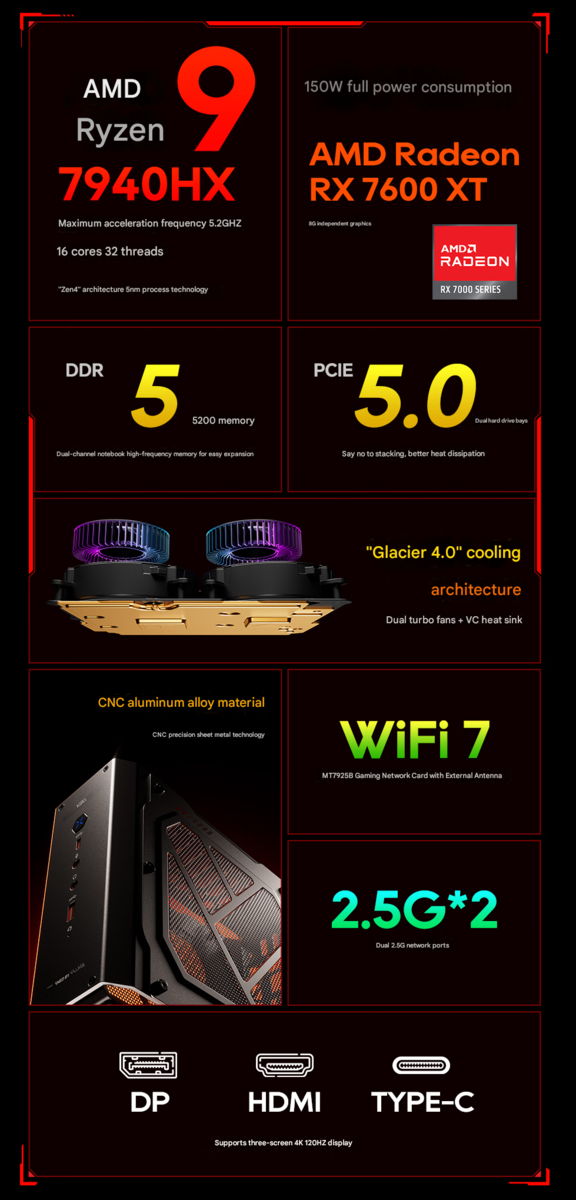 Aoostar hat einen neuen erschwinglichen Mini-PC mit dedizierter GPU auf den chinesischen Markt gebracht. Der GODY ist mit einem AMD Ryzen 9 7940HX ausgestattet, einem High-End-Prozessor aus der Dragon Range Familie. Der Prozessor kann mit bis zu 64GB DDR5-RAM mit 5.200 MHz kombiniert werden.