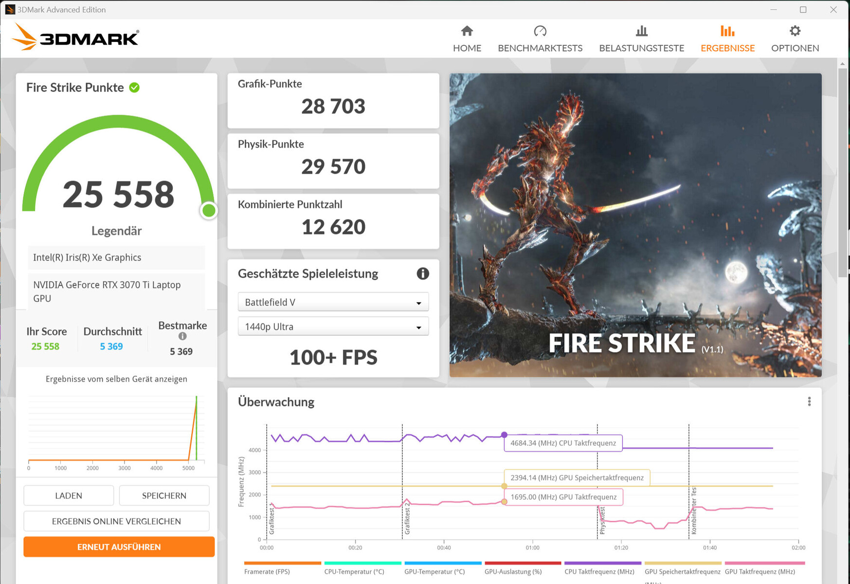 | Aorus 15 XE5 i7-12700H, GeForce RTX 3070 Ti Laptop GPU | Acer Nitro 5 AN515-46-R1A1 R7 6800H, GeForce RTX 3070 Ti Laptop GPU | Schenker XMG Fusion 15 (Mid 22) i7-11800H, GeForce RTX 3070 Laptop GPU | Asus TUF Dash F15 FX517ZR i7-12650H, GeForce RTX 3070 Laptop GPU | MSI Katana GF66 12UGS i7-12700H, GeForce RTX 3070 Ti Laptop GPU | Durchschnittliche NVIDIA GeForce RTX 3070 Ti Laptop GPU | Durchschnitt der Klasse Gaming | |