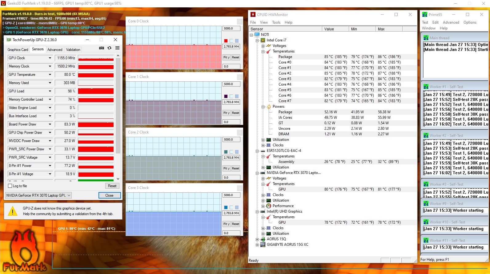 | Aorus 15G XC i7-10870H, GeForce RTX 3070 Laptop GPU | Aorus 15G XB i7-10875H, GeForce RTX 2070 Super Max-Q | Asus TUF Dash F15 FX516PR i7-11370H, GeForce RTX 3070 Laptop GPU | Schenker XMG Neo 17 (Early 2021, RTX 3070, 5800H) R7 5800H, GeForce RTX 3070 Laptop GPU | Razer Blade 15 RTX 2080 Super Max-Q i7-10875H, GeForce RTX 2080 Super Max-Q | Schenker Key 15 Comet Lake i7-10875H, GeForce RTX 2080 Super Max-Q | |