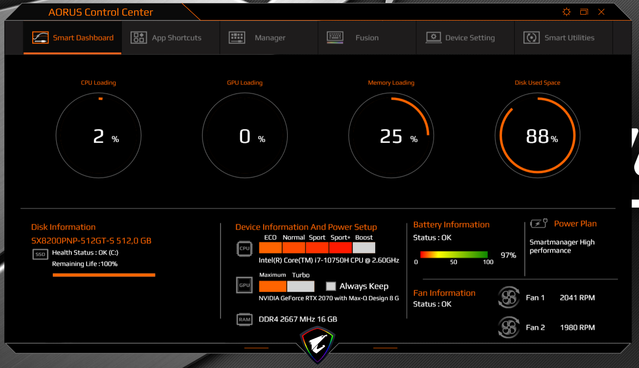 Energieverwaltung - Aorus-Notebook bietet sehr gute Akkulaufzeiten