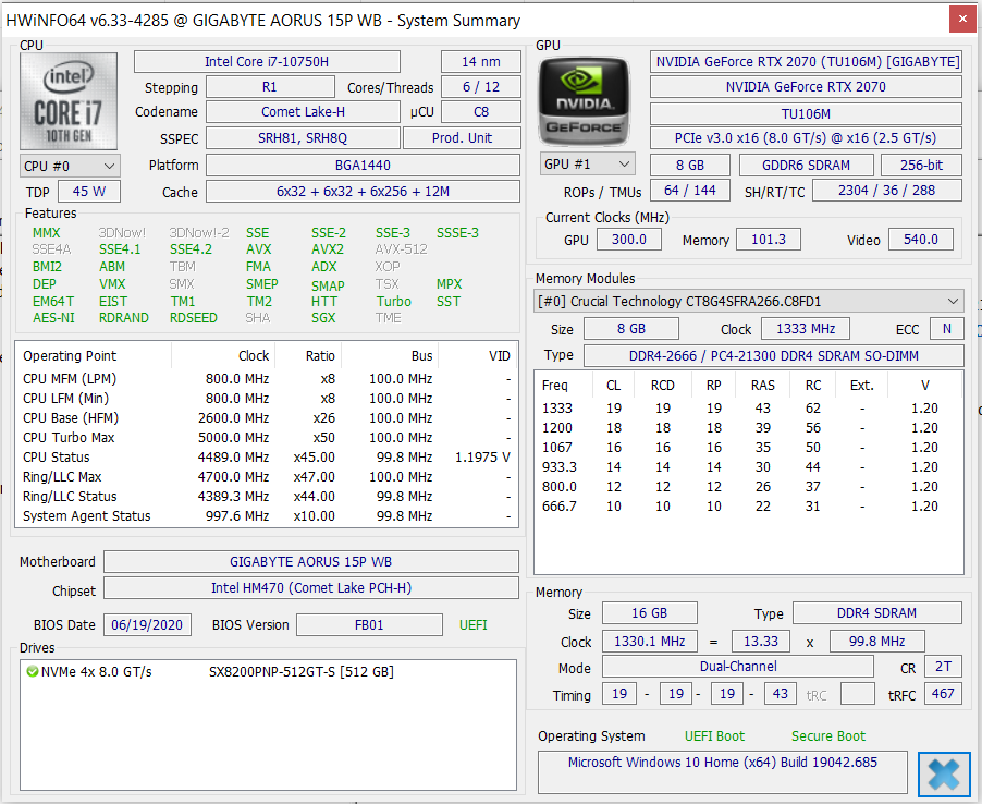 | 84.5 % v7 (old) | 01 / 2021 | Aorus 15P WB i7-10750H, GeForce RTX 2070 Max-Q | 2.1 kg | 23 mm | 15.60" | 1920x1080 | |