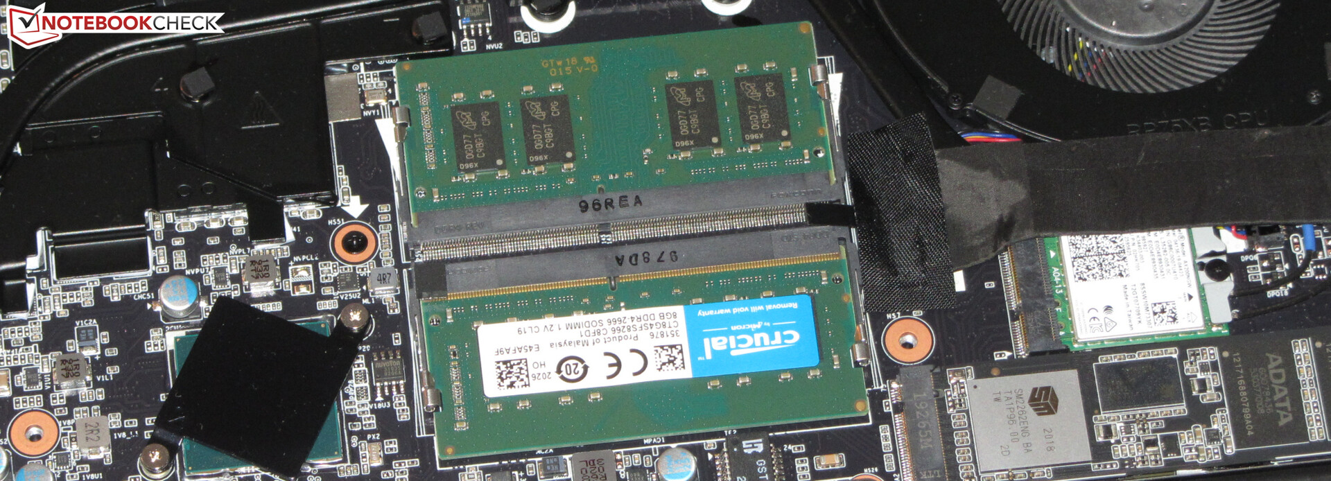 Der Hardware stehen 16 GB Arbeitsspeicher (2x 8 GB, Dual-Channel-Modus, max. 64 GB) und eine 512-GB-NVMe-SSD zur Seite. Das Speicherplatzangebot fällt für ein Gaming-Notebook nicht üppig aus. Bei Bedarf könnte eine zweite NVMe-SSD nachgerüstet werden. Da sich die Unterschale problemlos demontieren lässt, wären Aufrüstmaßnahmen leicht durchführbar.