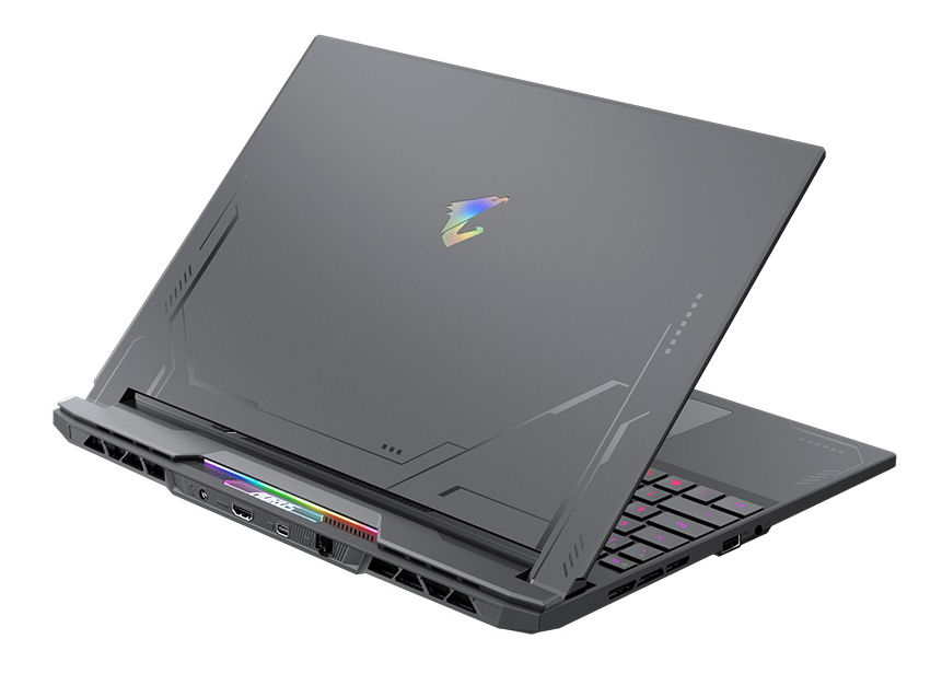 Das 15X bringt zwei USB-A-Steckplätze (USB 3.2 Gen 2) und einen USB-C-Anschluss (Thunderbolt 4) mit. Letzterer unterstützt Power Delivery und kann ein Displayport-Signal ausgeben. Somit gibt es zusammen mit dem HDMI-Anschluss (2.1) und dem dedizierten Mini Displayport (1.4) drei Videoausgänge. Einen Speicherkartenleser bringt der Aorus Computer nicht mit.