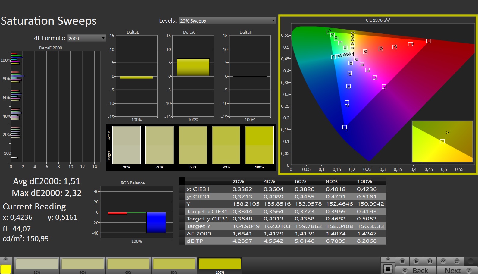 | sRGB Coverage (%) | 98.2 | 99.4 1% | 61 -38% | 100 2% | 99.9 2% |