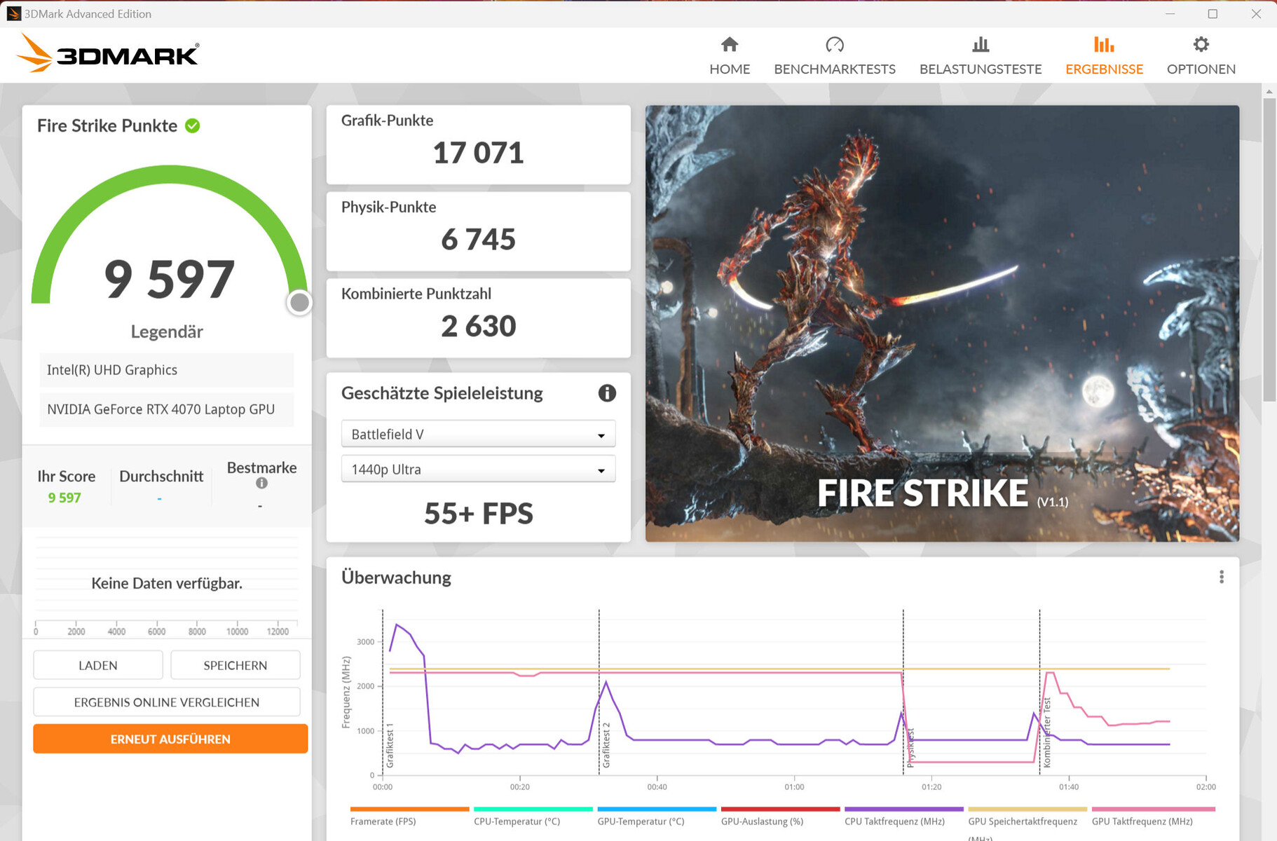 | Aorus 15X ASF i7-13700HX, GeForce RTX 4070 Laptop GPU | Razer Blade 15 OLED (Early 2022) i9-12900H, GeForce RTX 3070 Ti Laptop GPU | MSI Katana 17 B13VFK i7-13620H, GeForce RTX 4060 Laptop GPU | Asus ROG Strix G17 G713PI R9 7945HX, GeForce RTX 4070 Laptop GPU | Acer Predator Helios 300 (i7-12700H, RTX 3070 Ti) i7-12700H, GeForce RTX 3070 Ti Laptop GPU | Durchschnittliche NVIDIA GeForce RTX 4070 Laptop GPU | Durchschnitt der Klasse Gaming | |