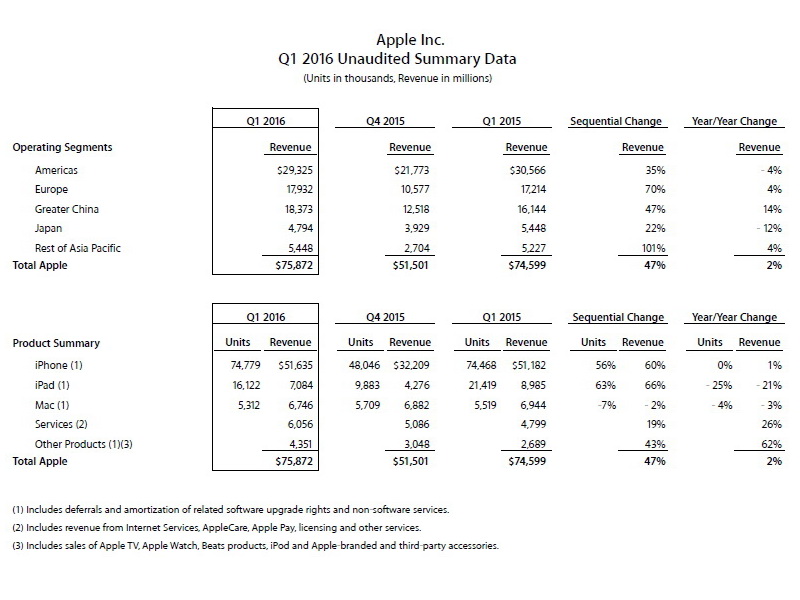 Es läuft bei Apple. Und das so mancher pessimistischer Einschätzung von Analysten zum Trotz. Apple schaffte es erneut, für ein Geschäftsquartal wieder Rekorde bei Umsatz und Gewinn verkünden zu können. Apple stemmt sich somit noch immer erfolgreich gegen den geradezu brutalen Wettbewerb im Smartphone-Markt. Die Ergebnisse für das erste Quartal im Geschäftsjahr 2016, welches am 26. Dezember 2015 endete, sprechen für sich.