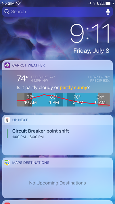 Wie wir schon berichtet haben, ist Slide to Unlock, also das Wischen zum Entsperren des Geräts passé. Stattdessen muss der Home Button gedrückt werden um das Passwort einzugeben beziehungsweise Touch ID zu benutzen. Das Wischen nach Links oder Rechts löst in iOS 10 neue Funktionen aus. Wischen nach Links öffnet nun die Kamera-App, in der Gegenrichtung erscheint die neu überarbeitete Spotlight-Suche zusammen mit Widgets, die nun einen deutlich höheren Stellenwert haben als in vorhergehenden iOS-Versionen. Dank Raise to Wake wird der Lockscreen zum Informationszentrum. Alle Termine, verpassten Informationen oder Benachrichtigungen sind dort versammelt. Sämtliche installierten Widgets und die Suche sind immer nur einen Wisch entfernt, so The Verge.