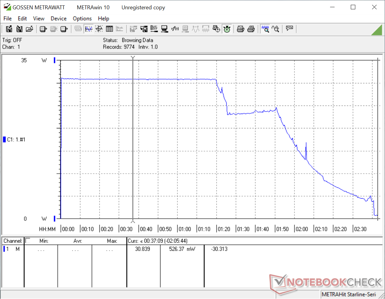 Bei der vollen Displayhelligkeit, die erneut bei etwas mehr als 400 cd/m² liegt, sinkt die Laufzeit im WLAN-Test deutlich. Hier ist bei unserem Testgerät schon nach rund 8,5 Stunden Schluss. Das ist immer noch besser als beim Vorgänger, aber der Vorsprung schmilzt deutlich.