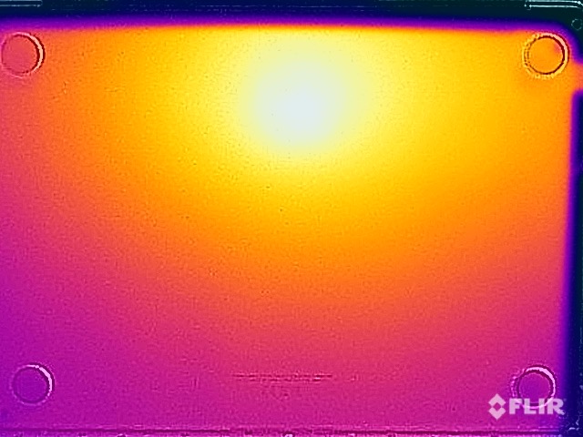 (±) Auf der Unterseite messen wir eine maximalen Wert von 44.6 °C (im Vergleich zum Durchschnitt von 39.3 °C).