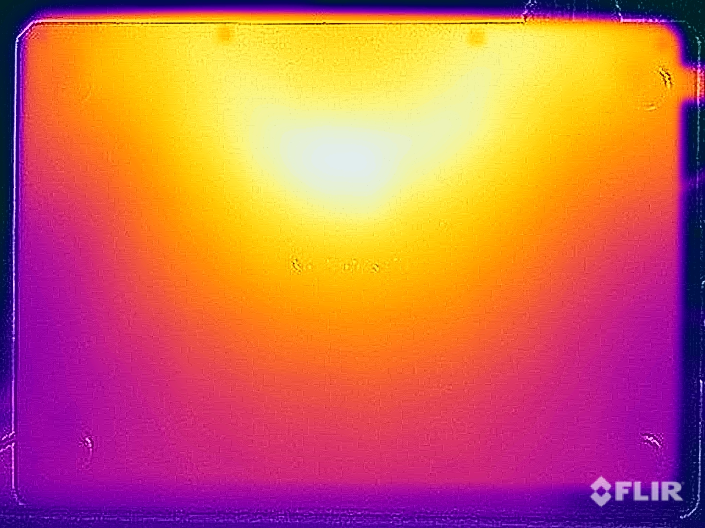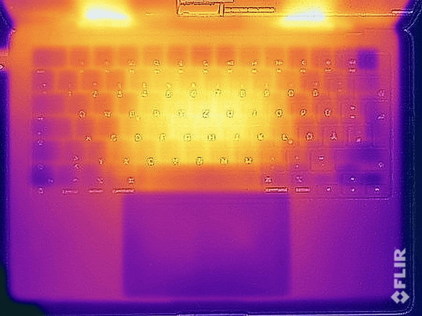 (+) Die Handballen und der Touchpad-Bereich erreichen maximal 35.4 °C und damit die typische Hauttemperatur und fühlen sich daher nicht heiß an.