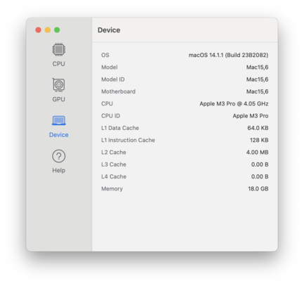 Die Kernkonfiguration des neuen M3 Pro hat sich gegenüber dem alten M2 Pro verändert. Beim M2 Pro bestanden die Cluster (Performance und Efficiency) jeweils aus 4 Kernen, beim kleineren 10-Kern-Modell waren jeweils nur drei der vier P-Kerne pro Cluster aktiv, was zusammen mit den 4 E-Kernen insgesamt 10 Kerne ergab. Beim neuen M3 Pro sind es nun aber zwei Cluster mit jeweils 6 Kernen, wobei bei der kleinen Varianten in unserem Testgerät aber nur 5 der 6 P-Kerne aktiv sind. Zusammen mit den 6 E-Kernen handelt es sich daher um eine 11-Kern-CPU. Die Kerne selbst haben die gleichen technischen Daten wie bei den restlichen M3-SoCs, denn die Performance-Kerne können bis zu 4,056 GHz und die Efficiency-Kerne bis zu 2,748 GHz erreichen, was in der Praxis auch der Fall ist. Zudem wurde die Geschwindigkeit vom Speicherinterface von 256 Bit beim M2 Pro auf 192 Bit reduziert, weshalb die maximale Speicherbandbreite jetzt nur noch bei 150 GB/s anstatt 200 GB/s liegt.