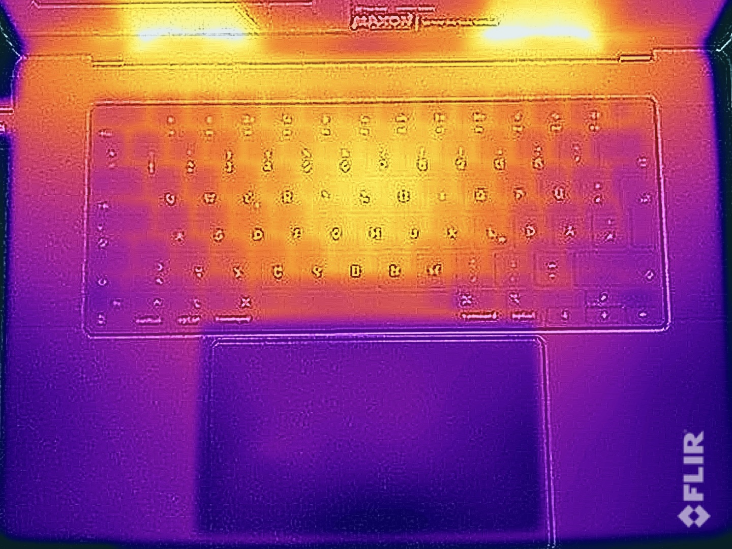 (+) Die Handballen und der Touchpad-Bereich sind mit gemessenen 30.1 °C kühler als die typische Hauttemperatur und fühlen sich dadurch kühl an.