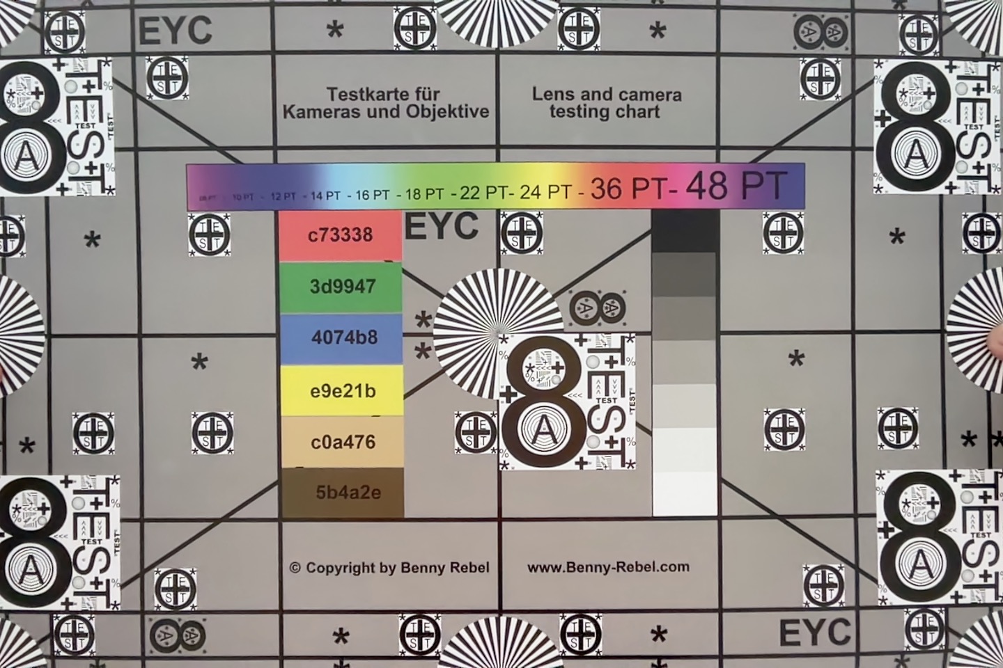 | Delta E Colorchecker * | 1.5 | 1.4 7% | 1.9 -27% | 2.28 -52% | 3.3 -120% | 4.59 -206% |