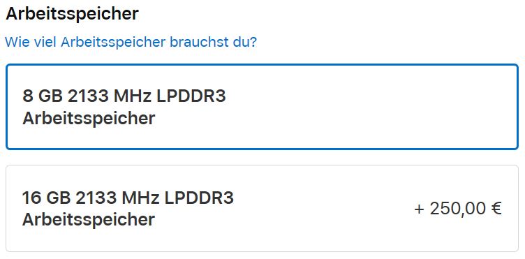 Der amerikanische Konzern Apple hat sich in der Vergangenheit schon einen Ruf damit gemacht, sehr hohe Preise für Upgrades bei seinen Geräten zu verlangen. Jetzt hat das Unternehmen allerdings noch einen drauf gesetzt, indem es die Upgradekosten für 16 anstatt 8 GB RAM bei seinem MacBook Pro 13 Zoll von 125 auf 250 Euro erhöht hat. Dabei beschränkt sich die Preissteigerung nicht nur auf den Euro-Raum. Auch in anderen Märkten wie den USA oder Großbritannien hat Apple die Preise für das Upgrade verdoppelt.